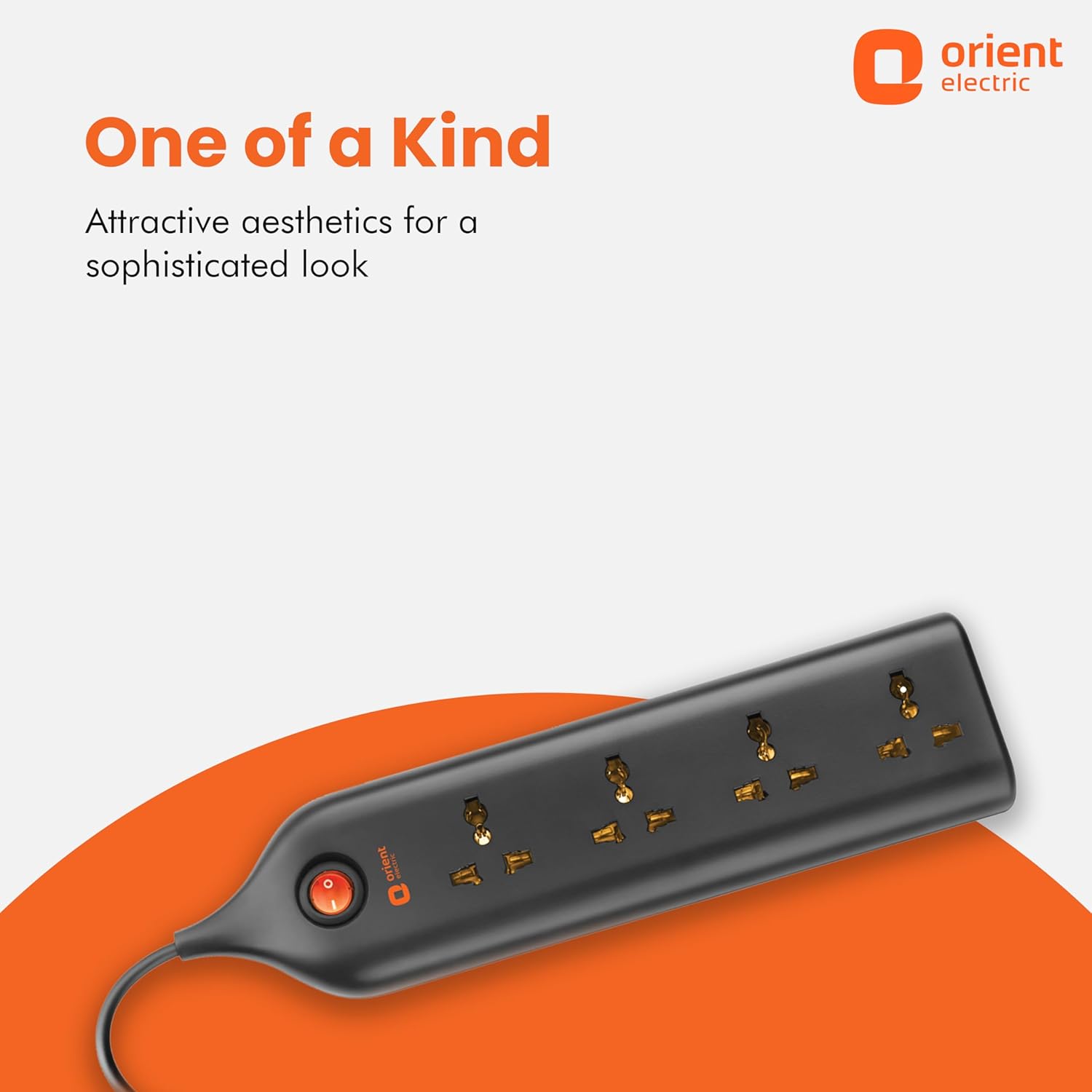 Orient Electric 240V 6A Four-Way Extension Board with Wire - 2 Metre with Overload and Short Circuit Protection (Black)
